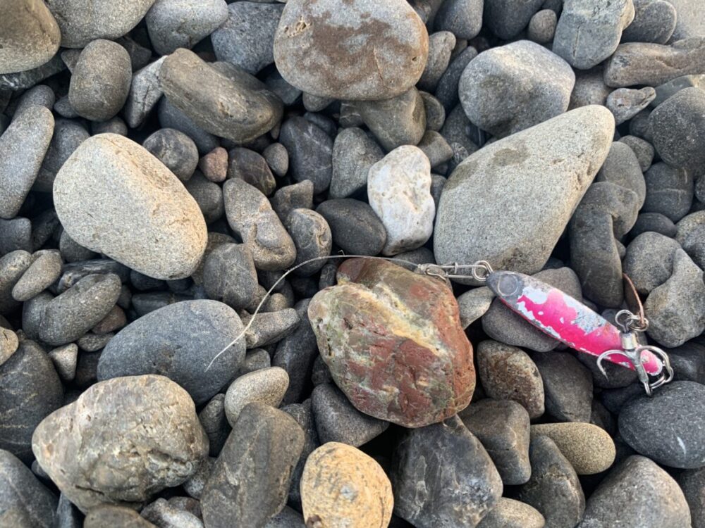 が、全く反応がない……というか、沖の方でナブラが起きているので手前にはいない様子。なので底付近に沈んでいる魚を狙ってみると……