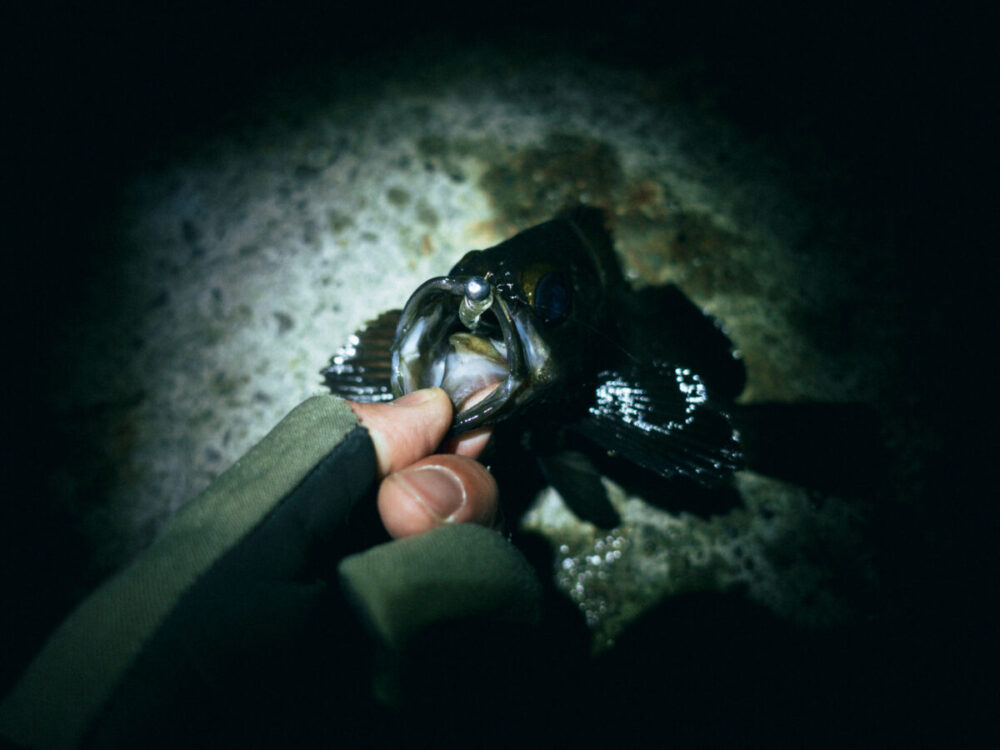 釣れたメバルを見ていると、夜の海がより深みを増して感じられる。潮の香り、潮の音、ルアーにアタックしてくる生命の気配。こうした瞬間があるからこそ、ULフィッシングはやめられない。
