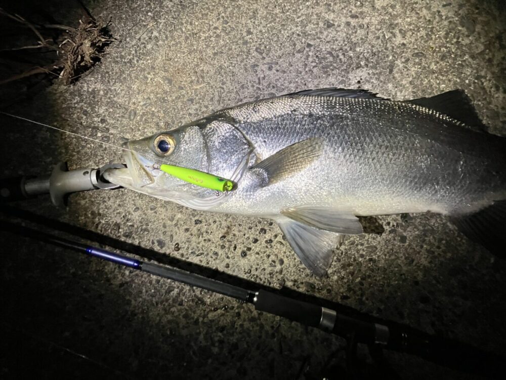 なにもこの時はじめてヒラスズキを釣ったわけではないが、このヒラスズキが僕が釣ったマックスサイズということと、狙い通りに釣れた嬉しさから、人生で一番印象に残っているヒラスズキだ。